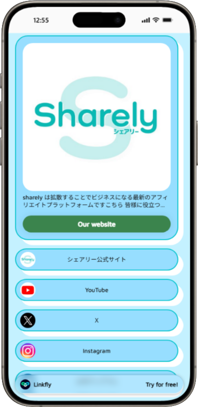 Sharelyの各種SNS、オフィシャルサイト、Youtubeチャンネルなどのリンクツリーはこちら
